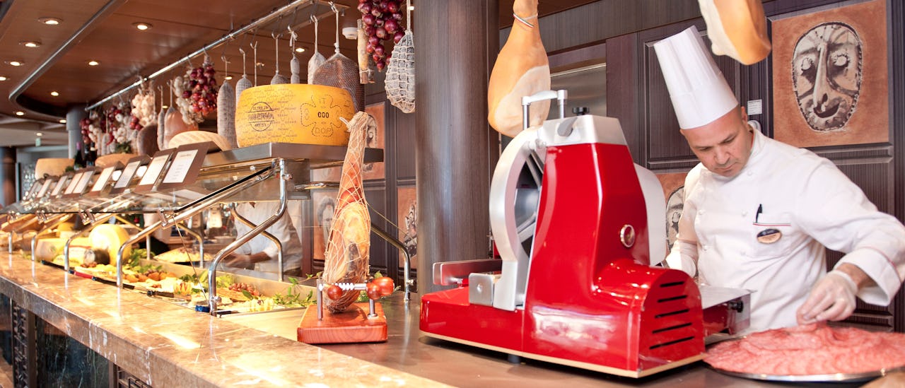 À la carte - ja buffet-ravintola sisältyvät hintaan. Luvassa on Välimeren maista tuttuja makuelämyksiä.