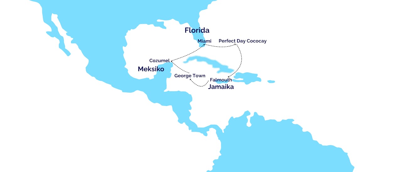 Miami - Perfect Day Cococay – Merellä – Falmouth – Georgetown - Cozumel - Merellä - Miami