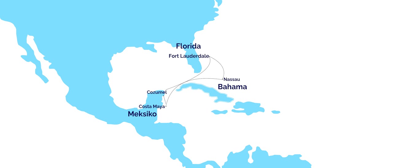 Fort Lauderdale – Nassau - Merellä - Costa Maya - Cozumel - Merellä - Fort Lauderdale