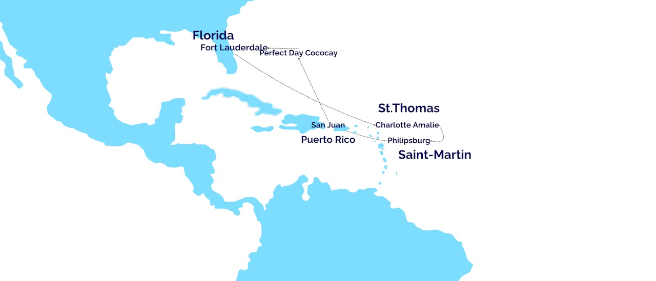 Fort Lauderdale – Merellä – Merellä – Charlotte Amalie - Phillipsburg - San Juan - Merellä - Perfect Day Cococay - Fort Lauderdale
