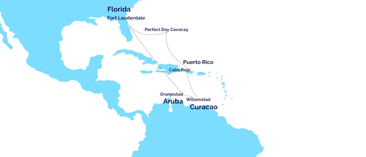 Fort Lauderdale – Merellä – Merellä – Oranjestad – Willemstad – Cabo Rojo – Merellä - Perfect Day Cococay - Fort Lauderdale