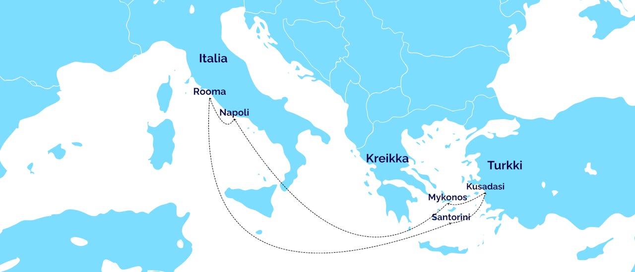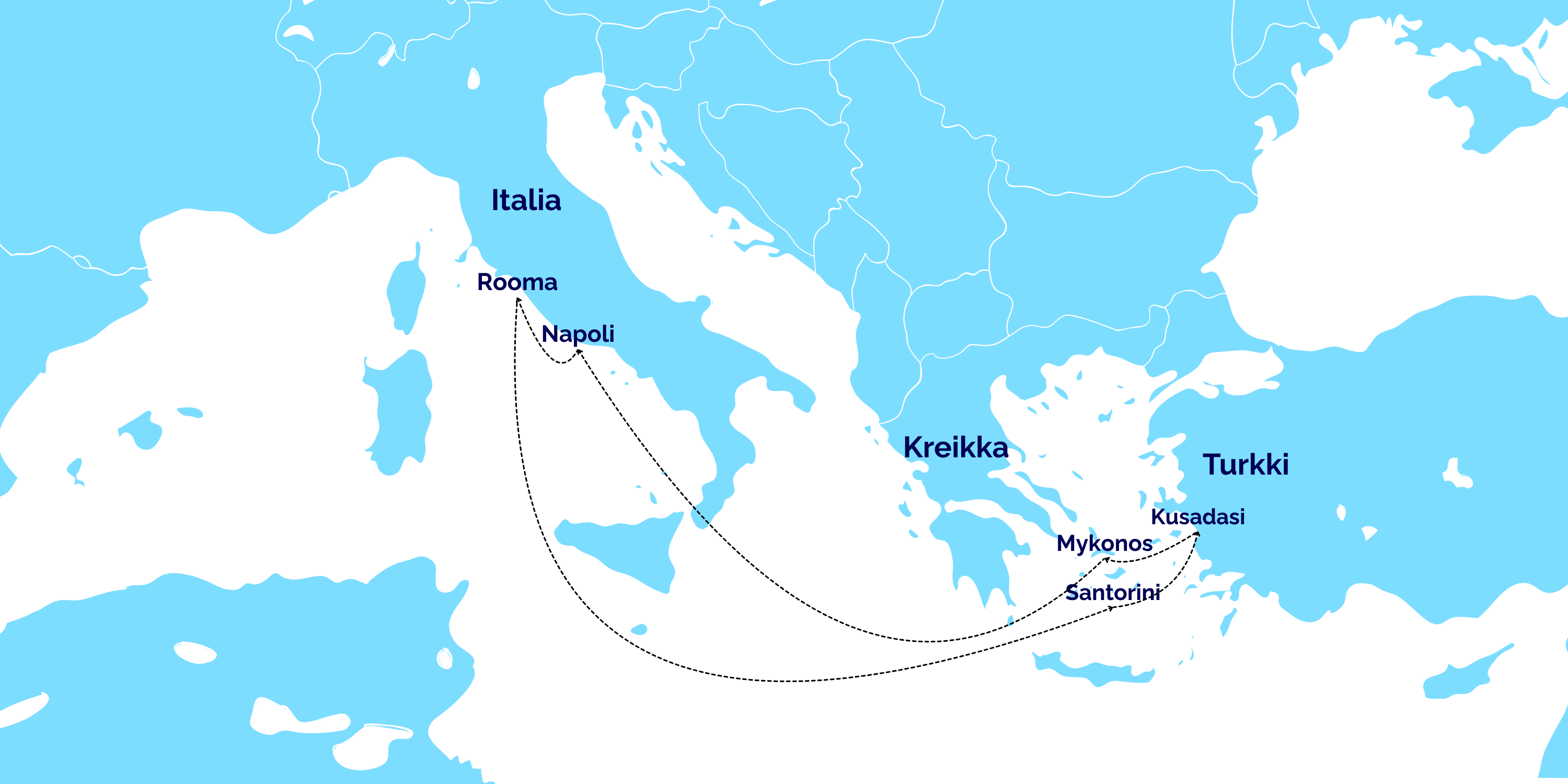 Royal Caribbeanin Välimeren risteilyt vievät sinut moneen ikonisempaan ja piilotetumpaan kohteeseen – Barcelonasta Roomaan ja Santoriniin. Näillä risteilyillä yhdistyy seikkailu, kulttuuri ja rento loma, joten voit valita juuri sinulle sopivat aktiviteetit ja nähtävyydet. Sinun ei tarvitse olla pelkästään seikkailun nälkäinen – löydät aina jotain, joka tekee lomastasi täydellisen!