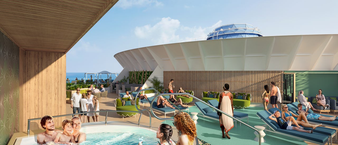 Laivalla on oma vehreä keidas, jossa on tuhansia oikeita kasveja, ruokailumahdollisuuksia ja elävää musiikkia