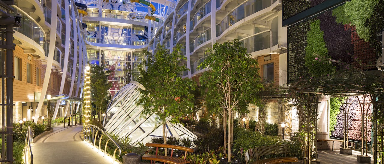 Step aboard the Utopia of the Seas, the largest class of cruise ships in the world! This floating resort boasts eight distinct "neighborhoods," each with its own unique features and amenities. With a selection of over 20 restaurants, an underwater wonderland, a vibrant park and the captivating AquaTheater, your unforgettable journey begins here!