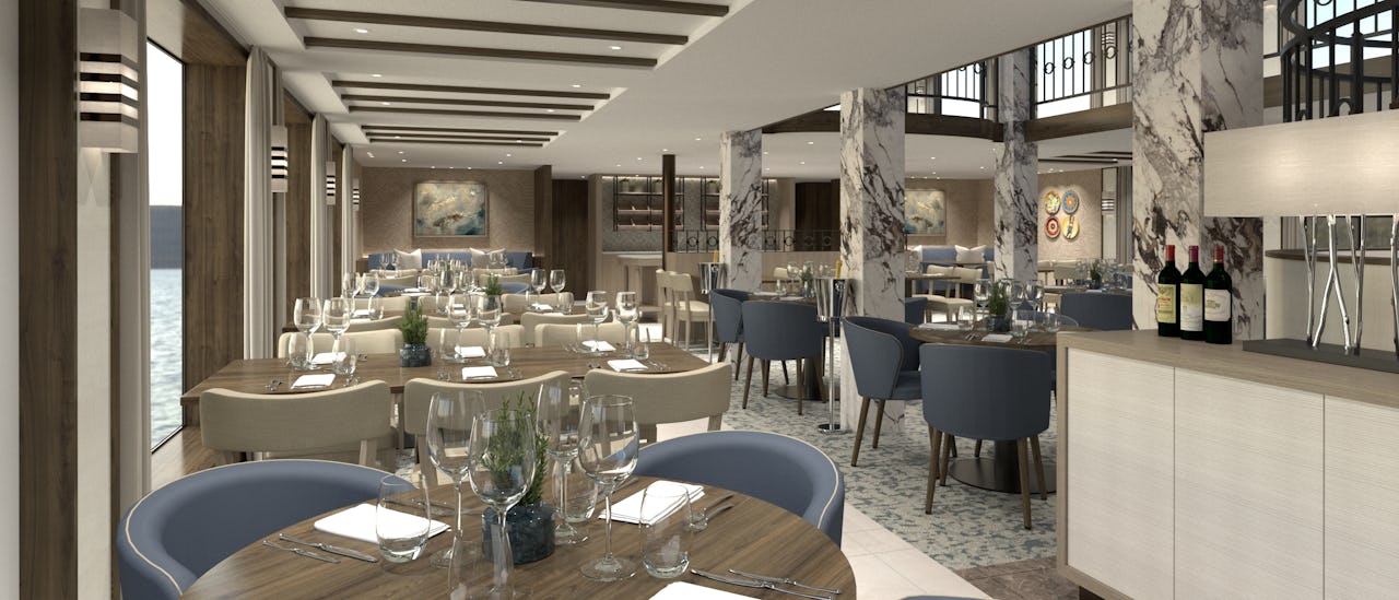 The ship's restaurant on the Ruby Deck offers exceptional service from the attentive, English-speaking crew. Enjoy first-class cuisine from seasonal menus paired with wines from the curated list, featuring regional favorites.